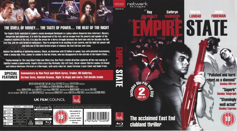 BluRay sleeve for the film Empire State, hand-signed in silver pen by director Ron Peck.